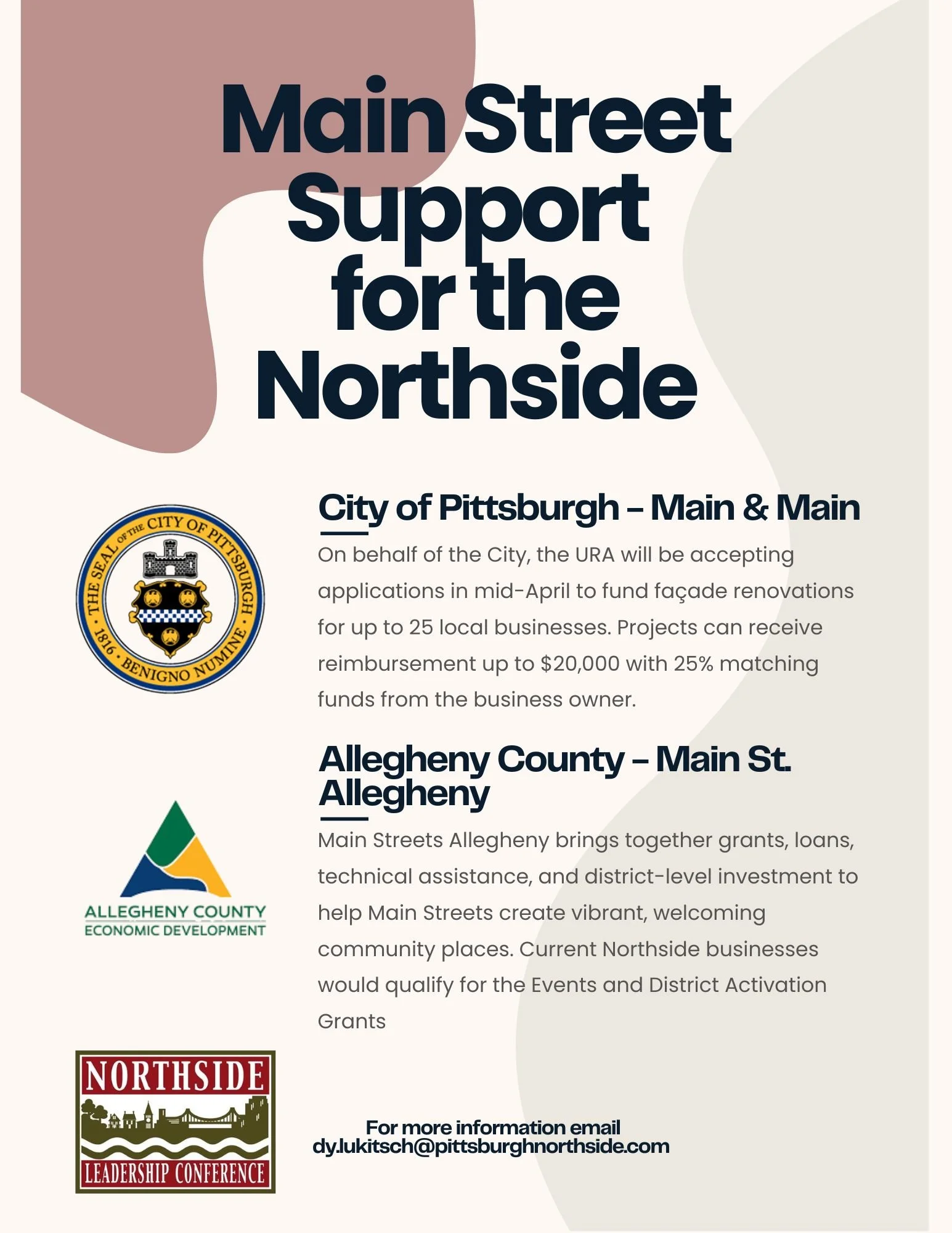 Please reach out to Dylan Lukitsch, at dylan@pittsburghnorthside.com, for any questions about funding sources.